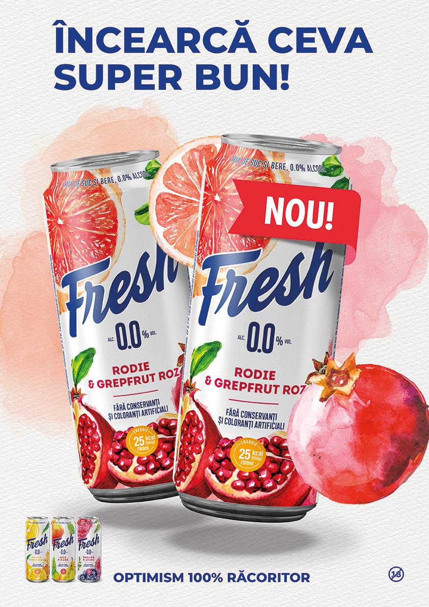 Sortimentul Fresh 0.0 Rodie și Grapefruit Roz este deja disponibil în toată România în magazinele off-trade și on-trade, în doze de aluminiu de 0,5l și sticle de 0,33l.