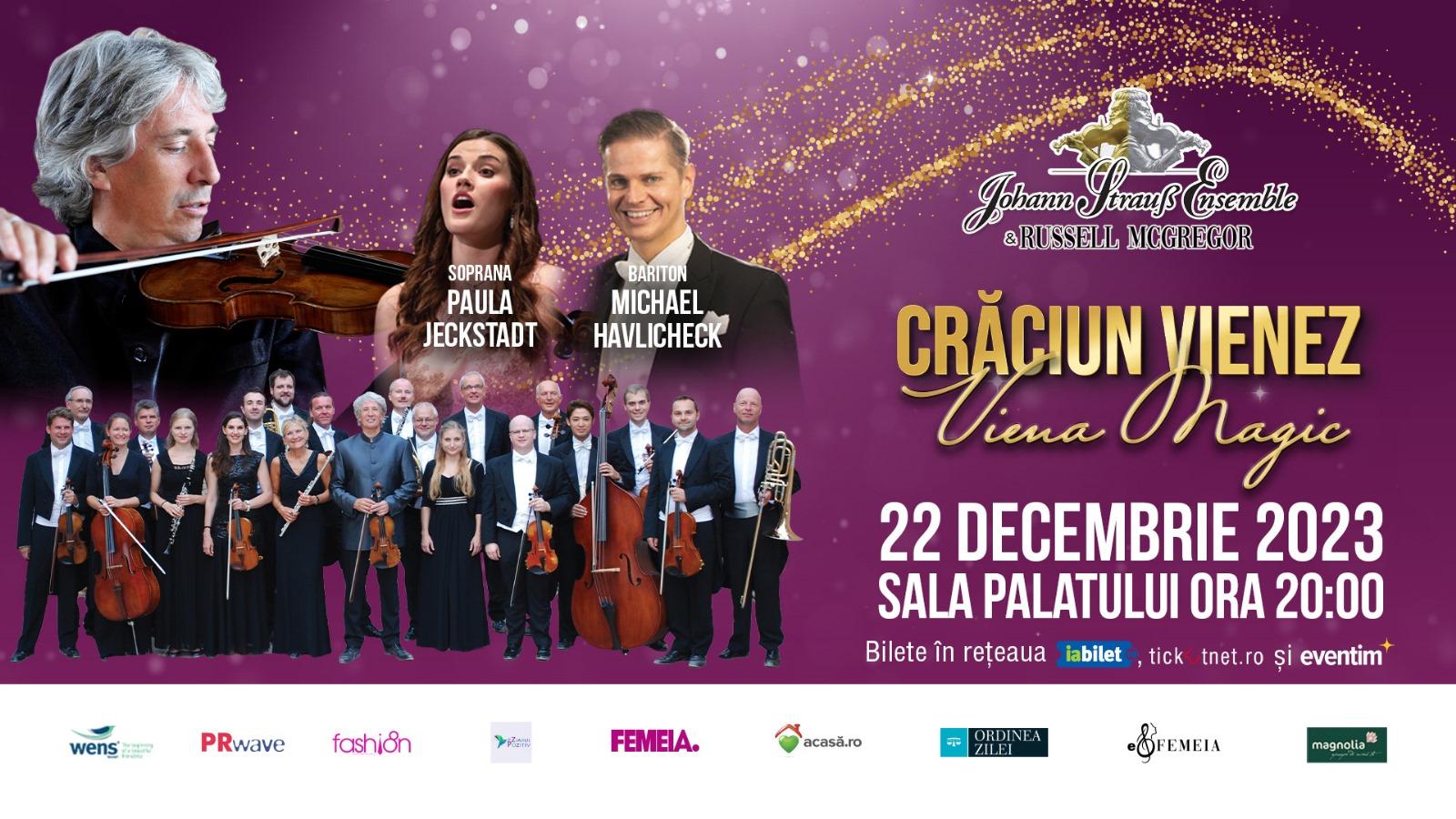 Biletele pentru concertul „Crăciun Vienez- Viena Magic” ce va avea loc pe data de 22 decembrie, ora 20:00 la Sala Palaului, se găsesc în format electronic pe www.iabilet.ro, ticketnet.ro, www.salapalatului.ro, www.eventim.ro și la casa de bilete a Salii Palatului.