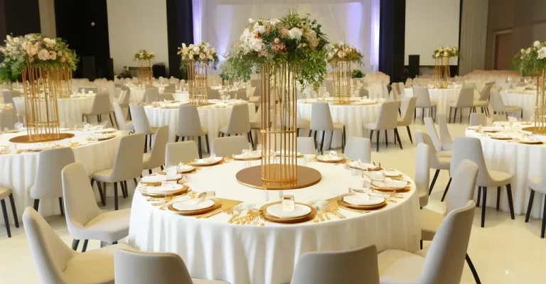 3. Funde mari din matase pe spatarele scaunelor, vaze, coloane sau arcade